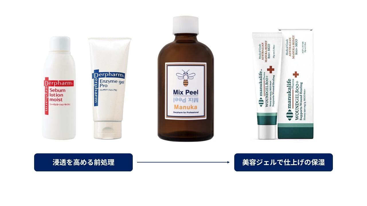 肌の再生力を高め、さまざまな肌悩みを多角的にケアします。肌の回復を早める効果があるため、ダウンタイム軽減に特に効果的です。